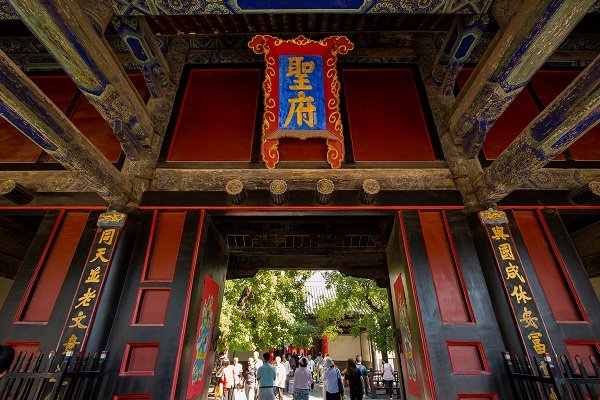 孔庙,公元前478年始建,后不断扩建,至今成为一处占地14公顷的古建筑群,气势宏伟,堪称宫殿之城。