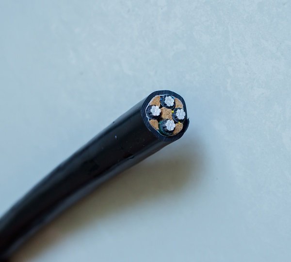 5、纵向抗拉实验:取一米安防电缆,分层剥开芯线,绝缘层,屏蔽层,外户套,各留10公分长。方法是:两只手分别握电缆的相邻两层,向相反方向拉动;好电缆一般力量拉不动,差电缆不费大力就可以轻松拉出来。